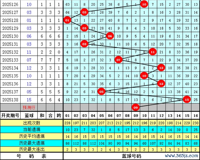 蓝球:历史同时0路号开出:03、06、09、15;1路号开出;01、07、10、16;2路号开出;02、05、08、11、14,蓝球012路个数比为7:4:8,现在0路号历史同时相对较冷,遗漏5年,本年同时符合温雅回补,看好蓝球09。